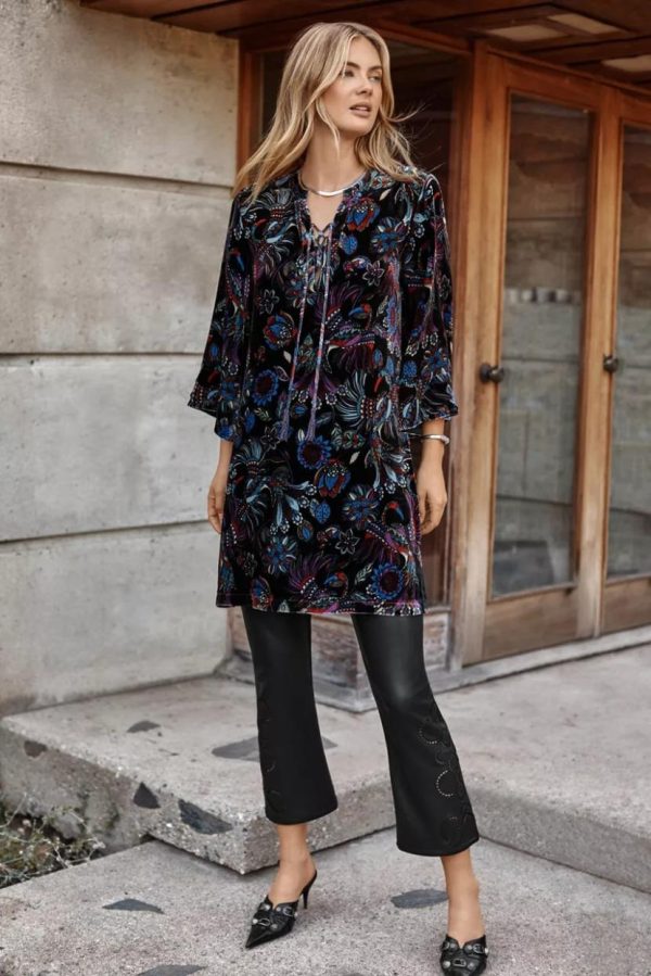 Expertly crafted from a luxurious silk blend, this stunning Tie Front Kimono Dress features vibrant floral patterns that make a statement. The elegant split V-neckline with adjustable tie closure and decorative tassels creates a flattering silhouette, while the authentic kimono-style 3/4 sleeves and knee-length hemline offer sophisticated coverage. Perfect for dressing up with strappy sandals and sparkling jewelry for your next special occasion.