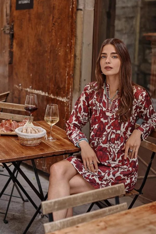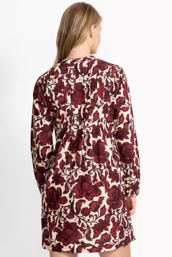 Crafted from a lightweight cotton blend, the Camilla Pleated Dress is embellished with a bold floral pattern. Featuring a split V-neckline and long sleeves, this unique dress is pleated at the shoulders and finished with a stylish curved hemline. Pair with coordinating flats and a clutch for a daytime event.